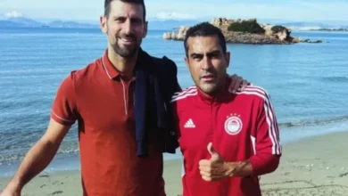 Ex-Prem ace who now sells fishing gear to tourists on beach snaps pic with Novak Djokovic – can you guess who it is?